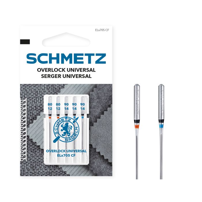 Schmetz Serger Universal CF (Chrome Finish) Pack of 5 Needles (Carded) Assorted Size - 2x NM 80, 3x NM 90.