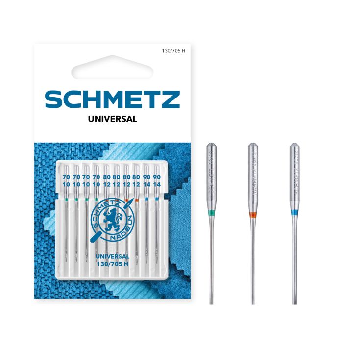 The SCHMETZ Universal needle is the most popular, all-purpose needle type. With a slightly rounded point, the Universal needle is suited for most fabrics. The Universal needle is available in the widest range of sizes plus twin needles and triple needles.